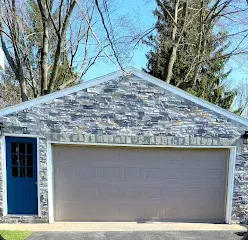 This garage was given a complete facelift with precision-cut stone veneer, turning a basic exterior into a bold architectural feature. The cool-toned stacked stone adds depth, texture, and modern character while blending naturally with the surrounding landscape. It's not just about looks—this finish adds insulation and lasting protection. A perfect example of how quality masonry can elevate the everyday into something exceptional.
