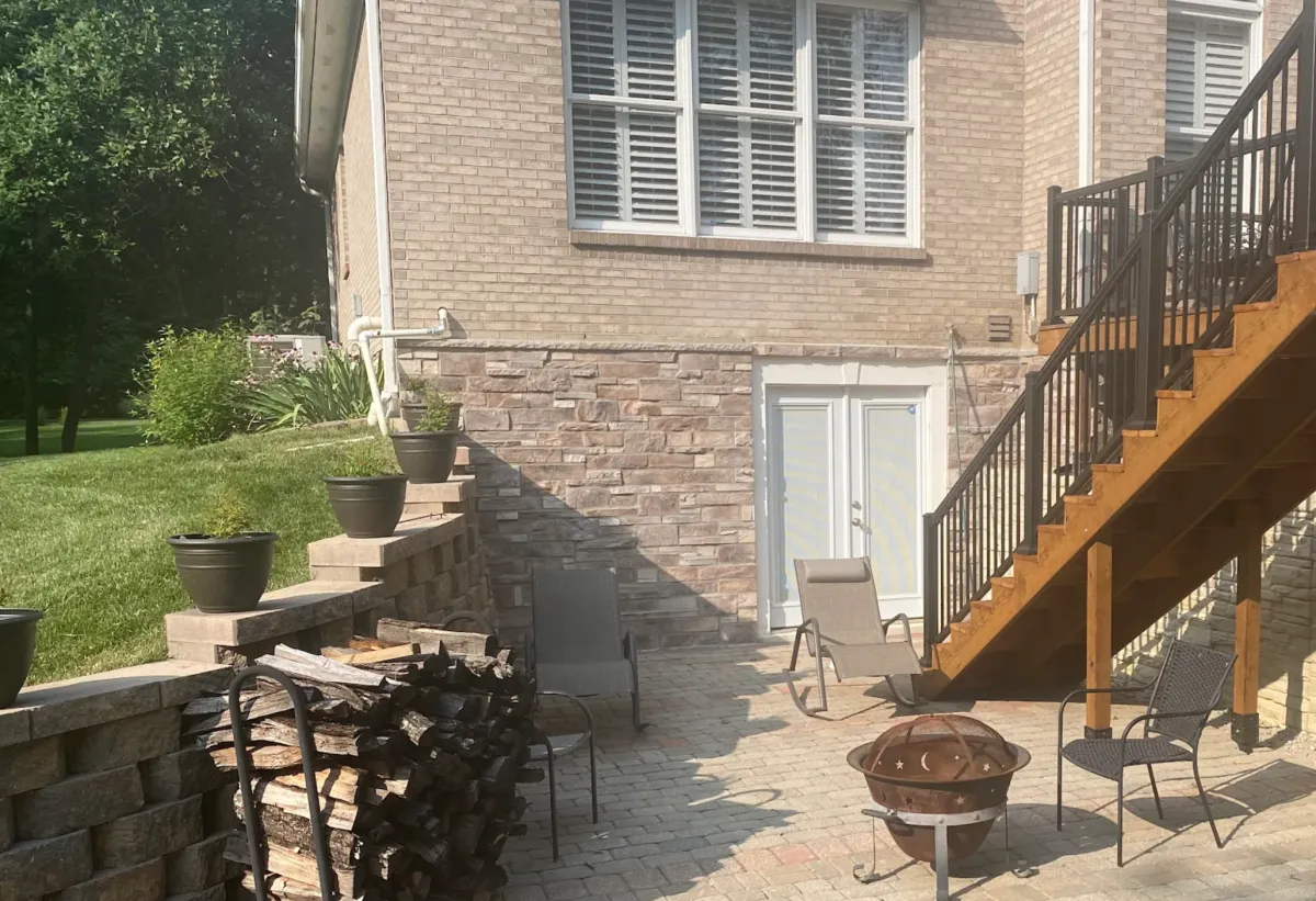 This outdoor transformation showcases the versatility and beauty of expert masonry. The custom retaining wall, textured stone siding, and interlocking paver patio create a cohesive, inviting space perfect for entertaining or unwinding. Every element—from the precision-cut walls to the natural flow of the layout—was built to last while adding warmth and value to the home. This is outdoor living, elevated by craftsmanship.